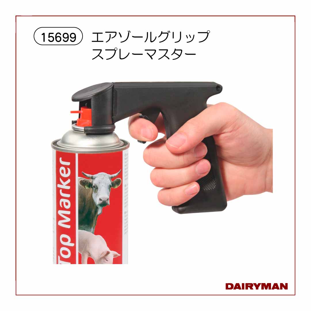 TOP > 酪農用品 > 共進会 > スプレー・洗剤 > エアゾールグリップ スプレーマスター【15699】 エアゾールグリップ スプレーマスター【15699】 ■商品番号 15699 ■送料 ■商品説明 スプレー缶をセットして、トリガーを握るだけで簡単にスプレーが噴射します。 手も保護できて快適にスプレーするための補助具です。 噴射位置を確認する手間を省きます。 握力の弱くなった方にもオススメです。 一般的なスプレー缶タイプに使用可能です。